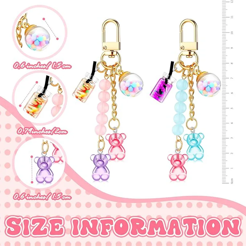 Der Schlüsselanhänger aus Acrylmaterial verfügt über ein kleines Bärenanhänger-Design, kombiniert mit anderen niedlichen Formen, sieht verspielt und charmant aus und fällt auf den ersten Blick ins Auge. Die helle Farbkombination verleiht dem Schlüsselanhänger eine natürliche Lebendigkeit. Am Körper oder an Gegenständen gehängt rückt es leicht in den Mittelpunkt und kann zudem den persönlichen Geschmack zum Ausdruck bringen. Dieses 2-teilige Set ist in verschiedenen Farben und Stilen erhältlich. Sie können für den persönlichen Gebrauch getauscht oder mit den besten Freunden und der Familie geteilt werden. Ob in Kombination mit verschiedenen Taschen oder als kleine Geschenke, sie sind alle sehr gut geeignet.