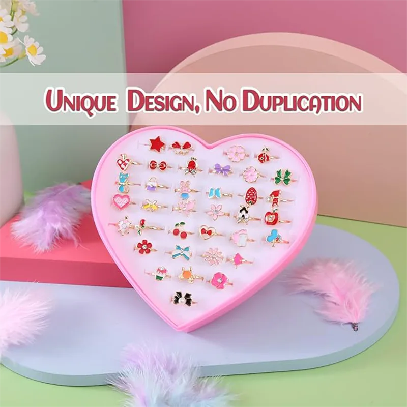 Hergestellt aus hochwertiger Legierung und Metall, ohne Nickel, hautfreundlich, sicher und pflegeleicht. Der in einer Schachtel verpackte Kinderring ist ein Schmuckset für Prinzessinnen-Verkleidungs- und Simulationsspiele. Es ist ein perfektes Zubehörset für kleine Kinder und ein ausgezeichnetes Spielzeug für Mädchen im Alter von 4 bis 12 Jahren.