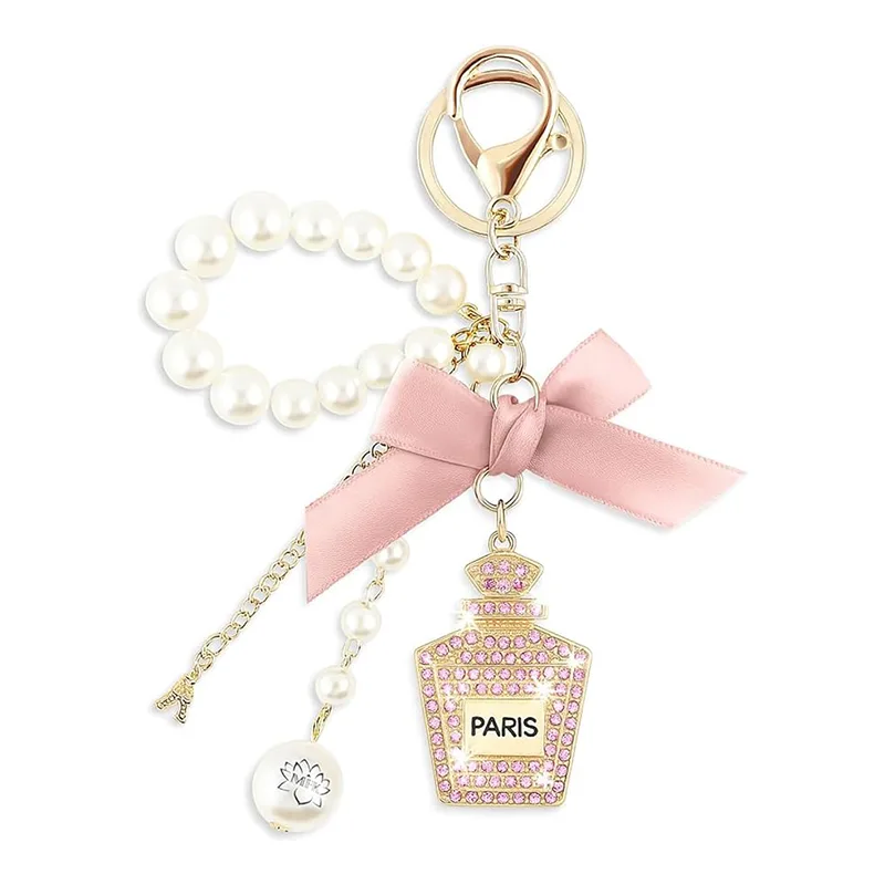 Der niedliche Luxus-Schlüsselanhänger besteht aus hochwertigen Materialien und ist zuverlässig und von beruhigender Qualität. Das Parfümflaschenmodell besteht aus einer langlebigen Zinklegierung, gepaart mit hochwertigen Perlen und Kristallen. Es weist eine ausreichende Härte und starke Verschleißfestigkeit auf und kann seinen Glanz über einen langen Zeitraum beibehalten. Das Buchstabenmodell besteht aus umweltfreundlichen Metallen und Perlen, frei von Schadstoffen. Es wurde einer sorgfältigen Verarbeitung unterzogen, sodass es auch für Menschen mit empfindlicher Haut unbedenklich ist.
