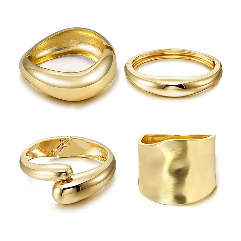 Das Damen-Alltagsarmband aus Legierung ist in vier einfachen und robusten Ausführungen erhältlich: Das modische goldene tropfenförmige Armband, das breite Armband, das robuste Armband und das goldene unregelmäßige Armband sind alle erhältlich und werden Ihren unterschiedlichen Bedürfnissen voll und ganz gerecht.